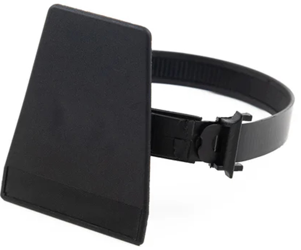 Only on the fork or handlebars at the front right. Addition: on a part of the vehicle that is difficult to remove with tools. This means no crash bars, footrests, parcel racks, easily unscrewable covers (e.g.: Scooter automatic / unscrewable cover on the inside of the leg shield or metal brackets that are screwed onto the saddle at the height of the rider’s knee) or open handlebar ends.